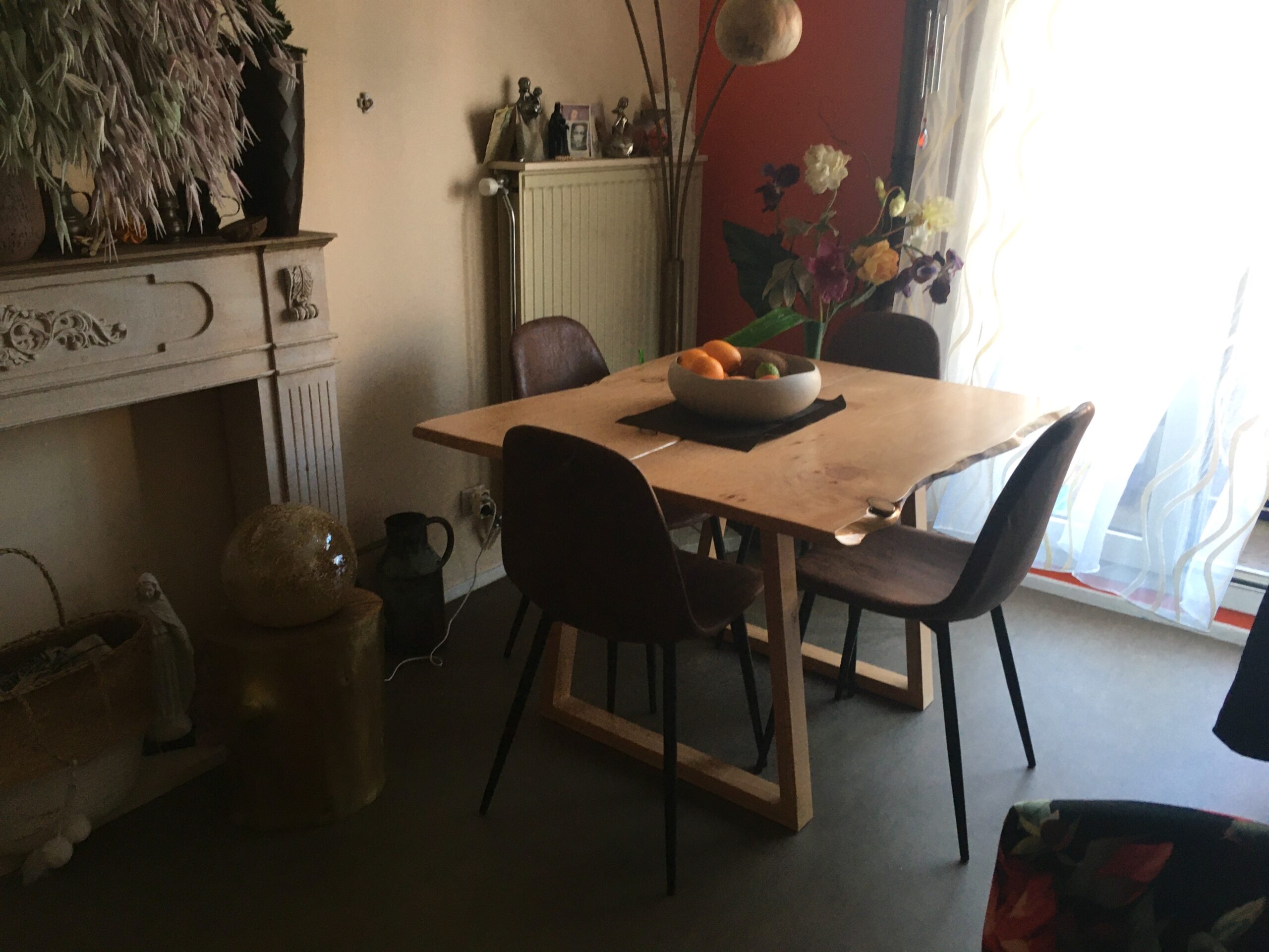 Le bois est local (breton), non issu de déforestation. Il est précieusement sélectionné par mes soins chez des professionnels locaux pour ses qualités, sa robustesse, l’originalité de ses motifs, son épaisseur. Il est massif. Je le fais bien sécher naturellement dans mon hangar aéré, longtemps. Il est ensuite poncé fin manuellement, sans machines d’usine, découpé à vos mesures, traité, poncé manuellement, avec des finitions de qualité (4 couches de vitrificateur A+ sur fond dur). Lorsque des pieds métal sont ajoutés, ils ont été réalisés sur mesure, par un ferronnier d’art local, en Bretagne. Il s’agit de véritable acier, pas d’aluminium, également travaillé artisanalement. Mes fabrications sont durables et respectueuses de l’environnement.